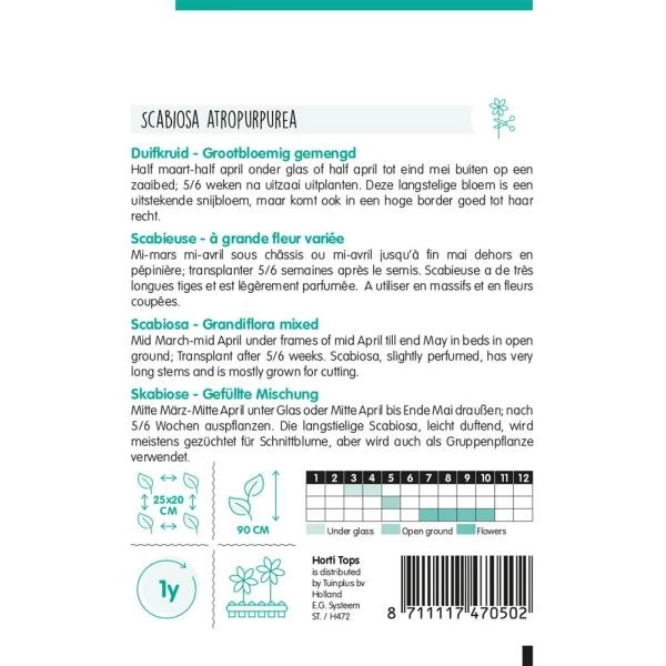 Prachtige scabiosa voor in de hoge border. Deze langstelige bloem leent zich ook perfect als snijbloem.