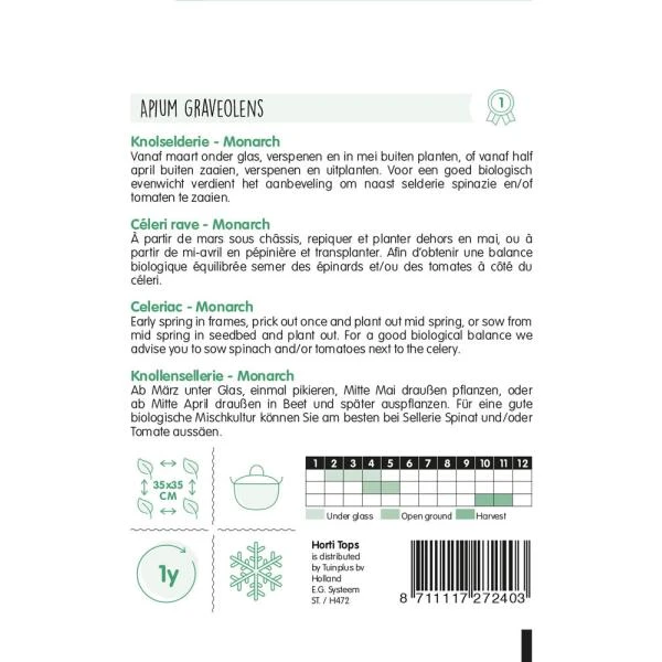 Vanaf maart onder glas zaaien, verspenen en in mei buiten planten of vanaf half april buiten zaaien. Combineer met spinazie en tomaten voor een goed biologisch evenwicht