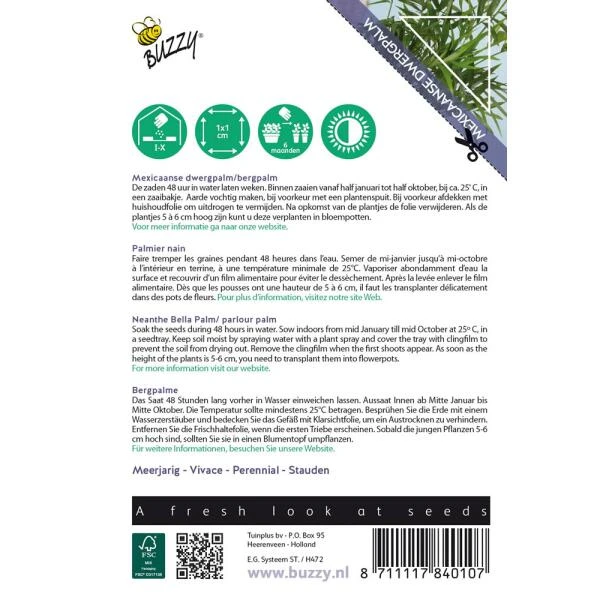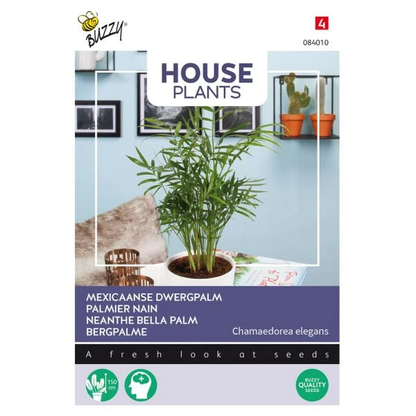 De Mexicaanse dwergpalm is een mooie groene kamerplant. De plant draagt kleine crèmegele bloemen. De palm is uiterst geschikt als decoratieve kamerplant.
