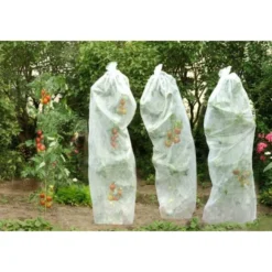 Kweek planten sneller en gezonder op door ze onder deze vliesdoek optimale groeiomstandigheden aan te bieden waardoor de planten tot ca. 3 weken groeivoorsprong kunnen genieten. Onder de doek is er een optimale uitwisseling van warmte en vocht waardoor de planten gedijen in een microklimaat die de groei en rijpingsproces bevordert. Dankzij deze vliestunnel kunnen vogels niet in de rijpe vruchten pikken en krijgt ongedierte ook geen kans om uw tomatenplanten te schaden.Eenvoudig aan te brengen. De vlieshoes knip je af op de gewenste lengte. Vervolgens vastbinden aan de tomatensteun en over de plant trekken.