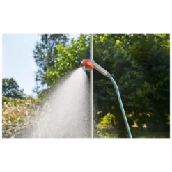 Met de GARDENA tuindouche Trio is buiten douchen nu net zo comfortabel als douchen in jouw badkamer. De douche is door het driepootstatief overal makkelijk te plaatsen. De flexibele en afneembare douchekop, die is aangesloten op een 1,3 meter Gardena tuinslang, biedt meer vrijheid voor douchen in de tuin. Er is keuze uit twee verschillende straalvormen: de brede, zachte straal voor douchen of de fijne verkwikkende sproeinevel.